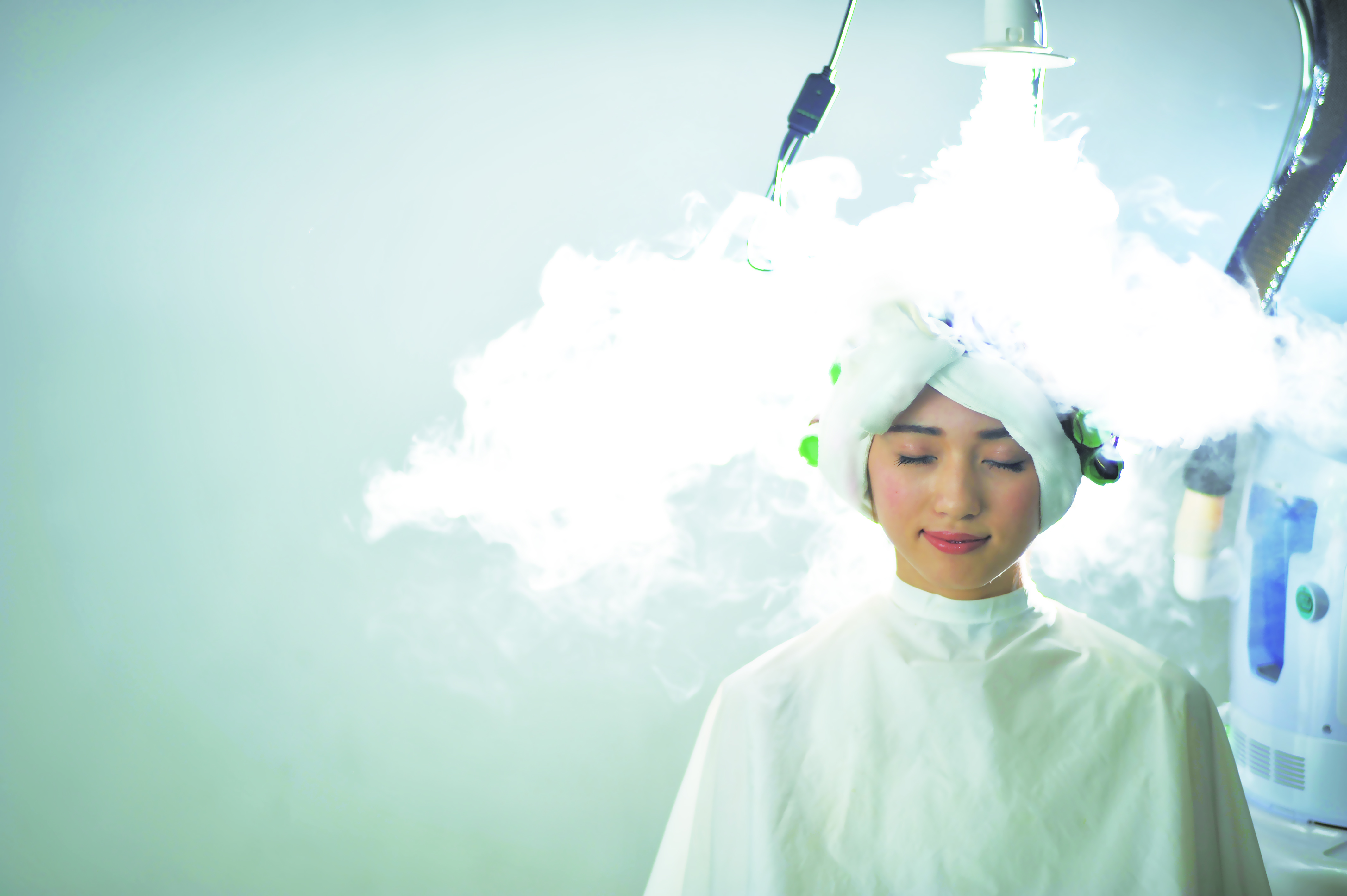 ヘアオペの薬液と細かい霧状になった「アミノイオン水」というプルーム線用水が組み合わされることにより、髪を傷めず、みずみずしい潤いを与えながらヘアデザインのご提供ができます。